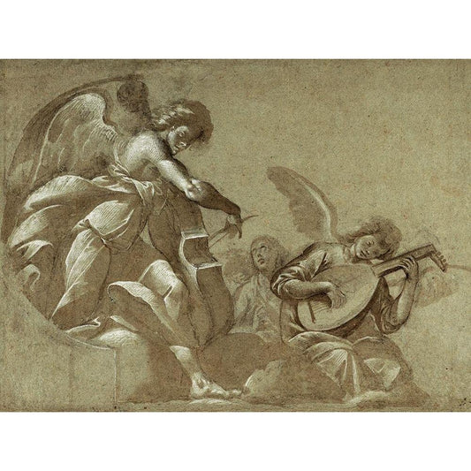 Angel Musicians (recto); Head Studies (verso) Black Modern Wood Framed Art Print with Double Matting by Morazzone, (Pie Francesco Mazzuchelli)