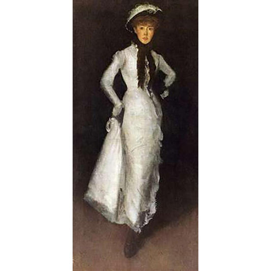 Girl In White Black Modern Wood Framed Art Print with Double Matting by Whistler, James McNeill
