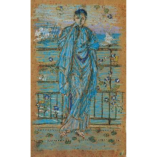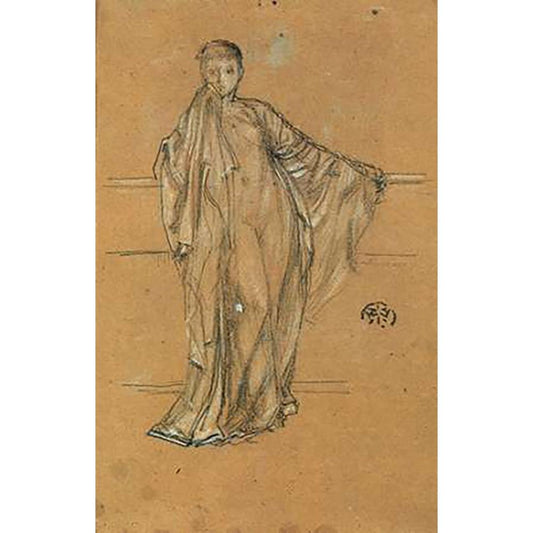 Draped Figure At A Railing 1868 Black Modern Wood Framed Art Print with Double Matting by Whistler, James McNeill