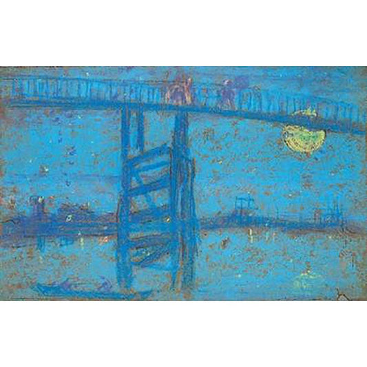 Nocturne Battersea Bridge 1872 Black Modern Wood Framed Art Print with Double Matting by Whistler, James McNeill