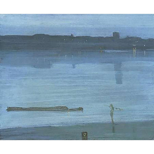 Nocturne Blue And Silver Chelsea Black Modern Wood Framed Art Print with Double Matting by Whistler, James McNeill