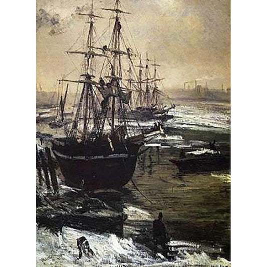 Thames On Ice Black Modern Wood Framed Art Print with Double Matting by Whistler, James McNeill