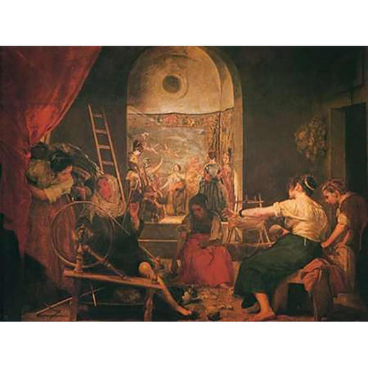 The Spinners The Fable Of Arachne Black Modern Wood Framed Art Print with Double Matting by Velazquez, Diego
