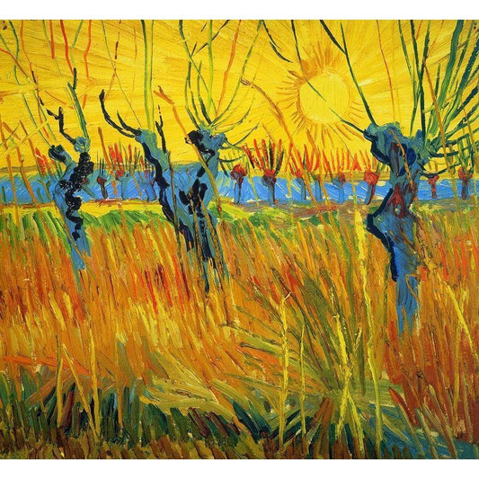 Willows At Sunset Black Modern Wood Framed Art Print with Double Matting by Van Gogh, Vincent