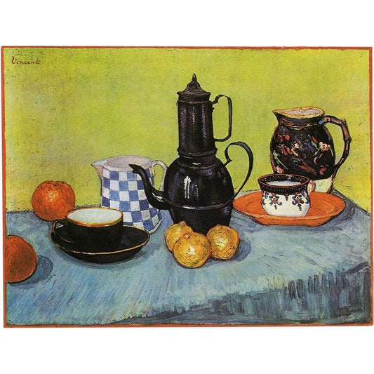Blue Enamel Coffeepot Black Modern Wood Framed Art Print with Double Matting by Van Gogh, Vincent