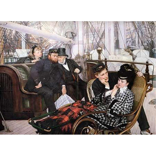 Return From Boating Trip Black Modern Wood Framed Art Print with Double Matting by Tissot, James