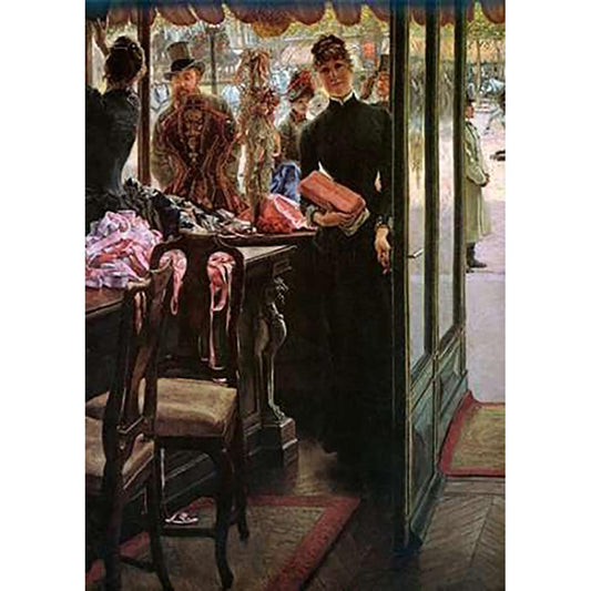 The Shop Girl Black Modern Wood Framed Art Print with Double Matting by Tissot, James