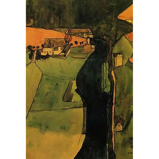 The Old City I Black Modern Wood Framed Art Print with Double Matting by Schiele, Egon