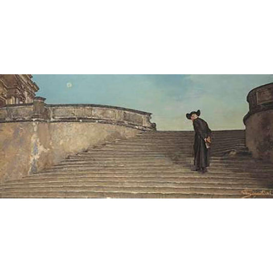 Early Mass Black Modern Wood Framed Art Print with Double Matting by Segantini, Giovanni