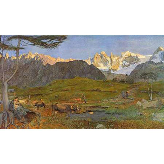 Alpine Meadows Black Modern Wood Framed Art Print with Double Matting by Segantini, Giovanni