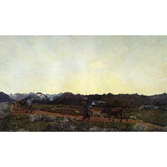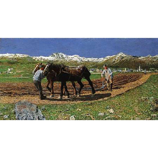 Ploughing Black Modern Wood Framed Art Print with Double Matting by Segantini, Giovanni