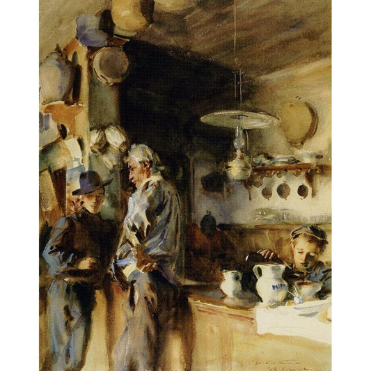 Wineshop, 1903 Black Modern Wood Framed Art Print with Double Matting by Sargent, John Singer