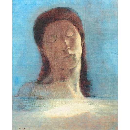 Closed Eyes - Female Black Modern Wood Framed Art Print with Double Matting by Redon, Odilon