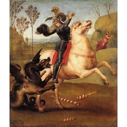 St George And The Dragon Black Modern Wood Framed Art Print with Double Matting by Raphael