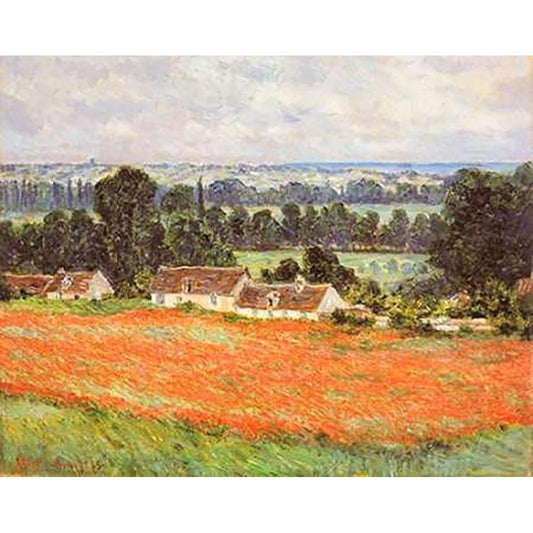 Field Of Poppies Giverny Black Modern Wood Framed Art Print with Double Matting by Monet, Claude