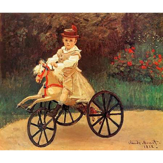 Jean An His Wooden Horse 1872 Black Modern Wood Framed Art Print with Double Matting by Monet, Claude