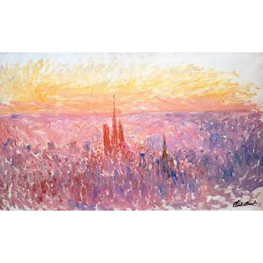 Rouen Cathedral Sun Effect End Of The Day Black Modern Wood Framed Art Print with Double Matting by Monet, Claude
