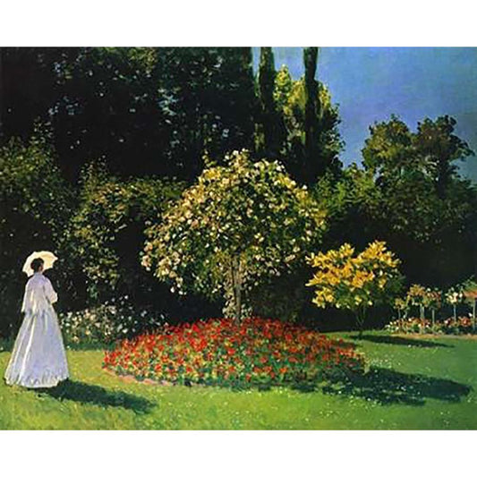 Lady In The Garden 1867 Black Modern Wood Framed Art Print with Double Matting by Monet, Claude