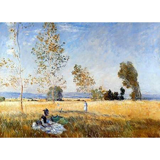 Meadow At Bezons Black Modern Wood Framed Art Print with Double Matting by Monet, Claude