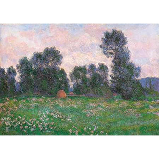 Meadow At Giverny 1890 Black Modern Wood Framed Art Print with Double Matting by Monet, Claude