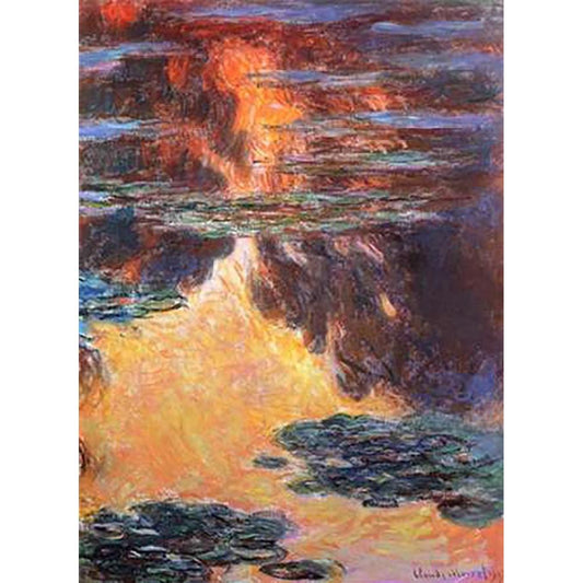 Nympheas Sunset Effect 1907 Black Modern Wood Framed Art Print with Double Matting by Monet, Claude