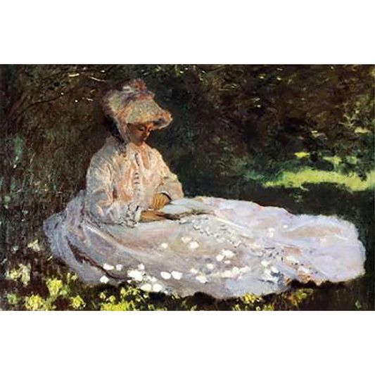 Camille Reading 1872 Black Modern Wood Framed Art Print with Double Matting by Monet, Claude
