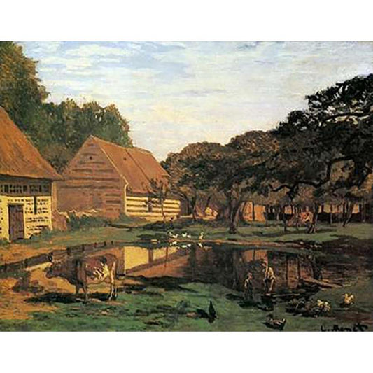 Farmyard In Normandy 1863 Black Modern Wood Framed Art Print with Double Matting by Monet, Claude