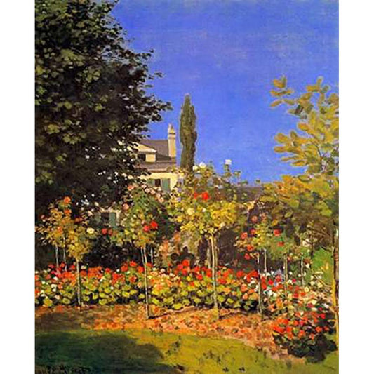 Flowering Garden 1866 Black Modern Wood Framed Art Print with Double Matting by Monet, Claude