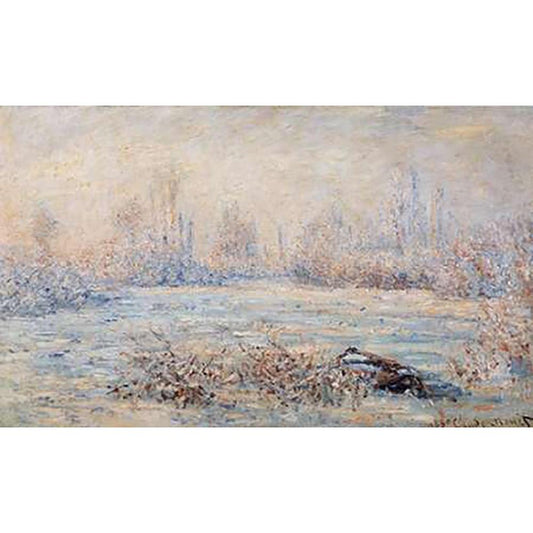 Frost 1880 Black Modern Wood Framed Art Print with Double Matting by Monet, Claude