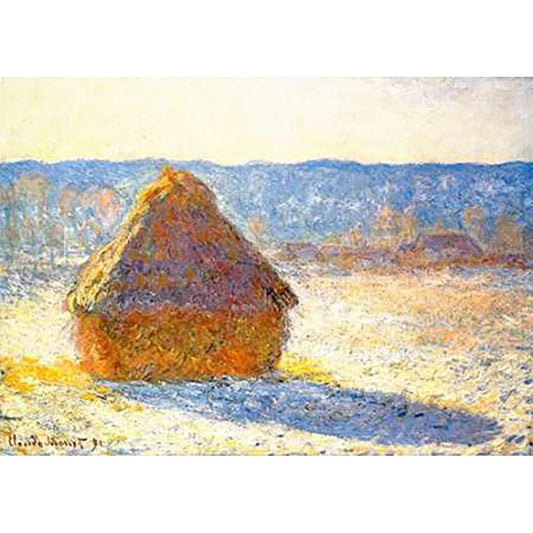 Haystack In Winter 1891 Black Modern Wood Framed Art Print with Double Matting by Monet, Claude