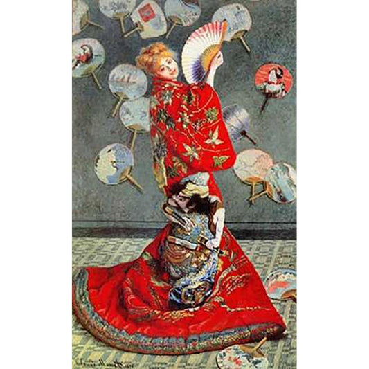 La Japonaise 1876 Black Modern Wood Framed Art Print with Double Matting by Monet, Claude