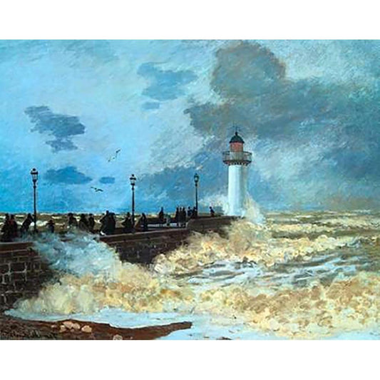 La Jettee Du Harvre Black Modern Wood Framed Art Print with Double Matting by Monet, Claude
