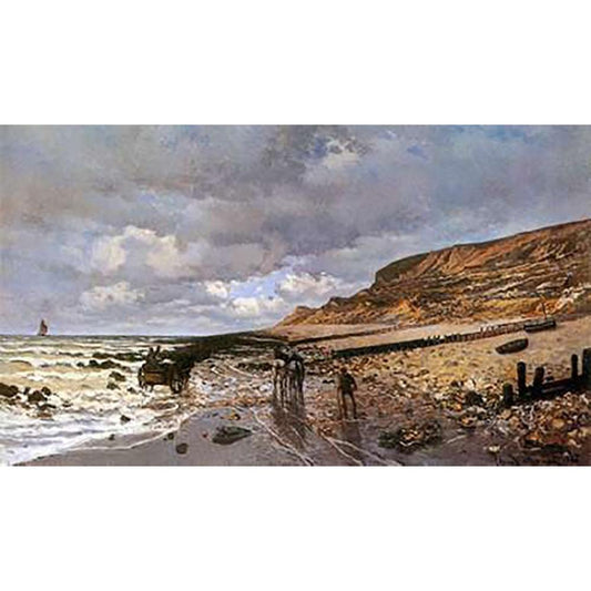 La Pointe De La Heve At Low Tide Black Modern Wood Framed Art Print with Double Matting by Monet, Claude