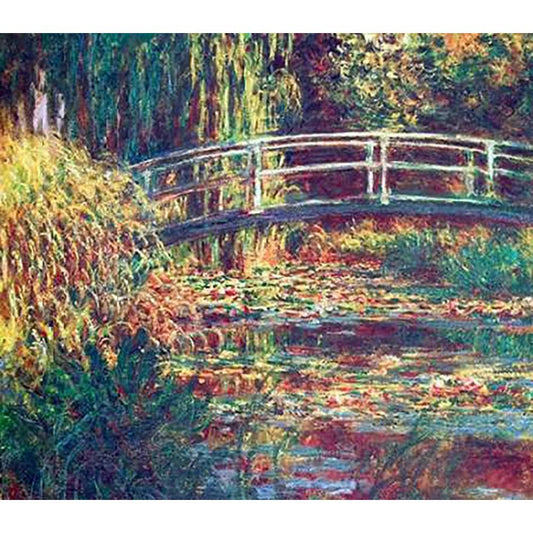 Japanese Bridge Black Modern Wood Framed Art Print with Double Matting by Monet, Claude