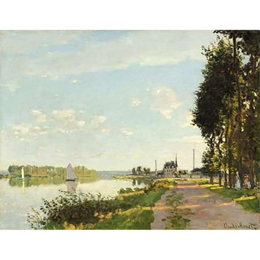 Riverside Walk At Argenteuil 1872 Black Modern Wood Framed Art Print with Double Matting by Monet, Claude
