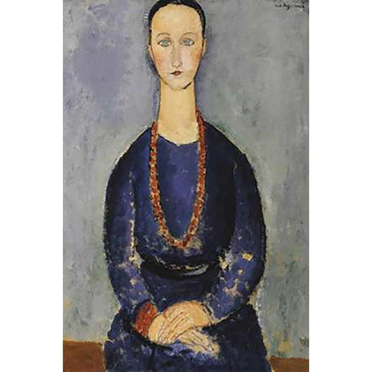 Woman With Red Necklace Black Modern Wood Framed Art Print with Double Matting by Modigliani, Amedeo