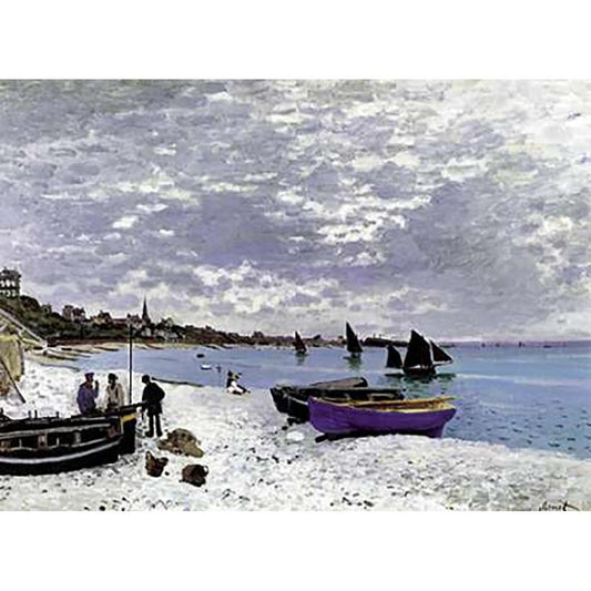 Beach At Sainte Adresse 1867 Black Modern Wood Framed Art Print with Double Matting by Monet, Claude