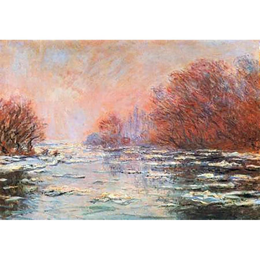 Breakup Of The Ice Near Vetheuil Black Modern Wood Framed Art Print with Double Matting by Monet, Claude
