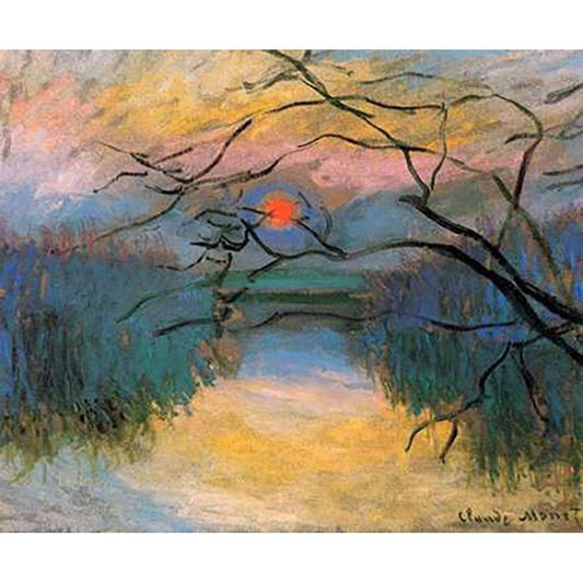 Coucher de soleil sur la Seine a Vetheuil Black Modern Wood Framed Art Print with Double Matting by Monet, Claude