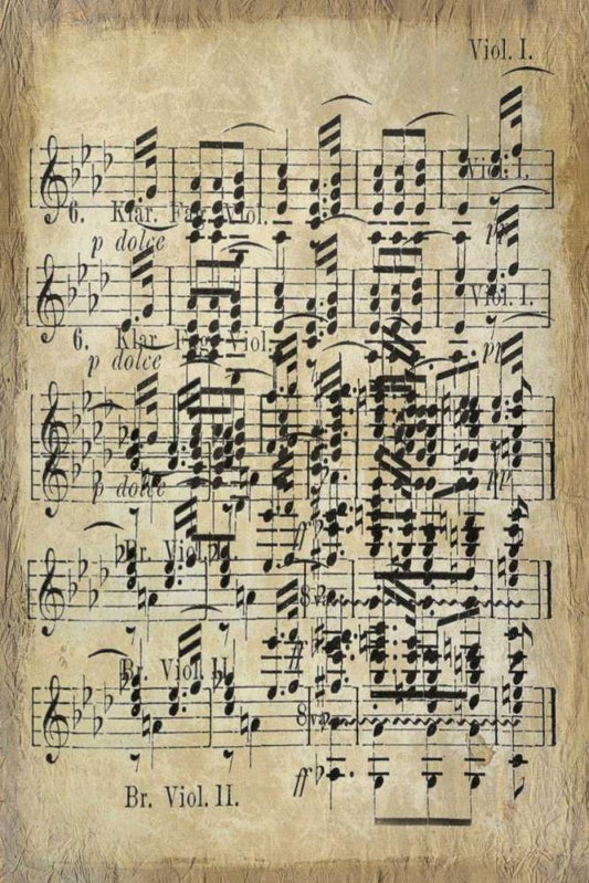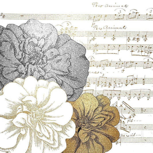 Mettalic Notes 1 White Modern Wood Framed Art Print with Double Matting by Kimberly, Allen