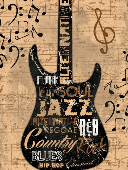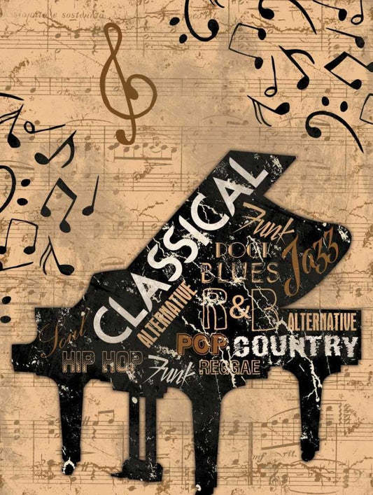 Music Notes Cream Mate White Modern Wood Framed Art Print with Double Matting by Grey, Jace