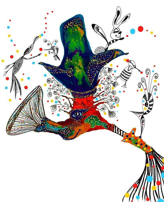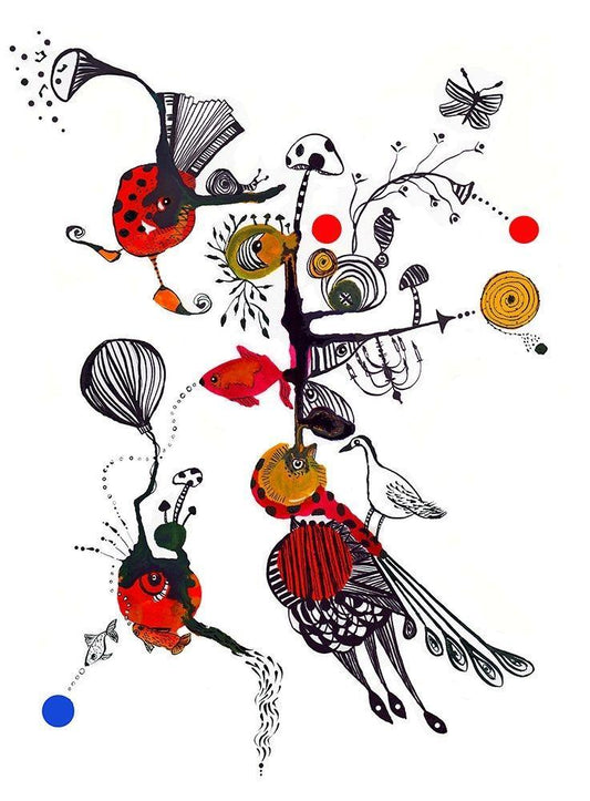Accordian Creatures White Modern Wood Framed Art Print with Double Matting by Kwerki Studios