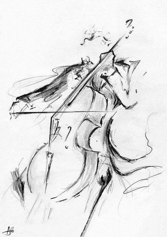 The Cellist Sketch White Modern Wood Framed Art Print with Double Matting by Allante, Marc