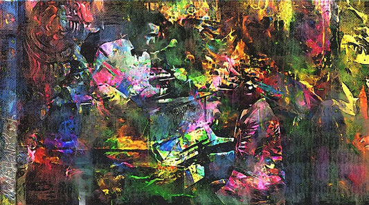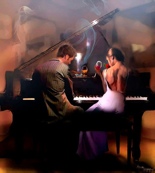 Play It Again Samprint White Modern Wood Framed Art Print with Double Matting by Murray Henderson Fine Art