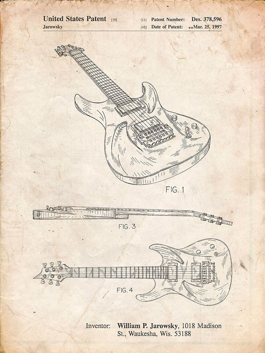 PP888-Vintage Parchment Ibanez Pro 540RBB Electric Guitar Patent Poster White Modern Wood Framed Art Print with Double Matting by Borders, Cole