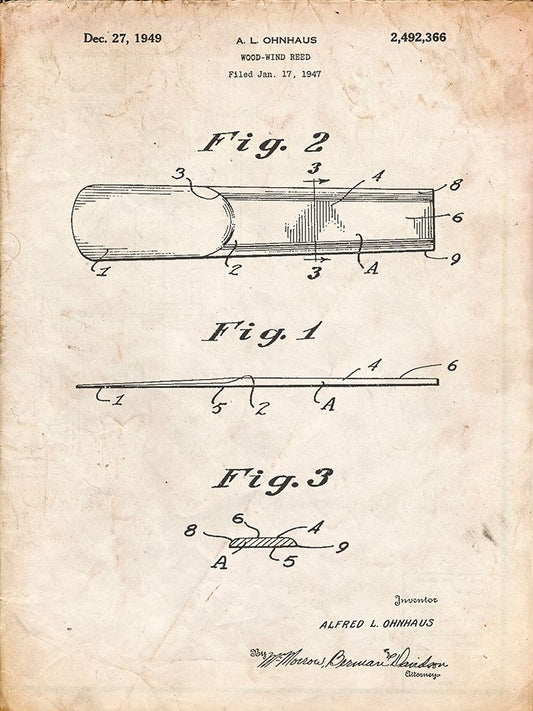 PP1010-Vintage Parchment Reed Patent Poster White Modern Wood Framed Art Print with Double Matting by Borders, Cole