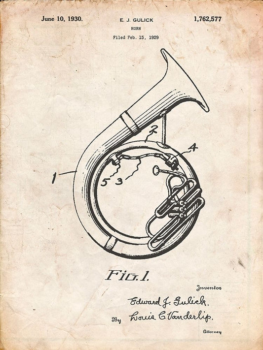 PP1049-Vintage Parchment Sousaphone Patent Poster White Modern Wood Framed Art Print with Double Matting by Borders, Cole