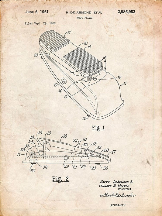 PP883-Vintage Parchment Horace N Rowe Wah Pedal Patent Poster White Modern Wood Framed Art Print with Double Matting by Borders, Cole