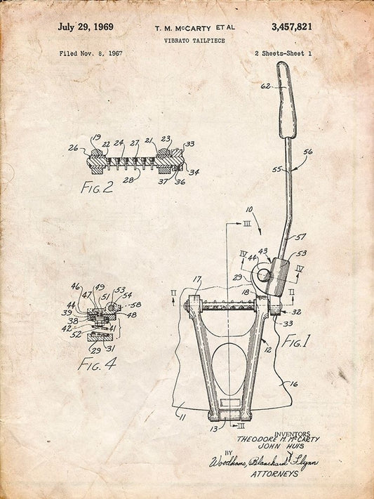PP1122-Vintage Parchment Vibrato Tailpiece Patent Wall Art Poster White Modern Wood Framed Art Print with Double Matting by Borders, Cole