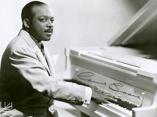 Count Basie-1955 Black Ornate Wood Framed Art Print with Double Matting by Vintage Music Archive